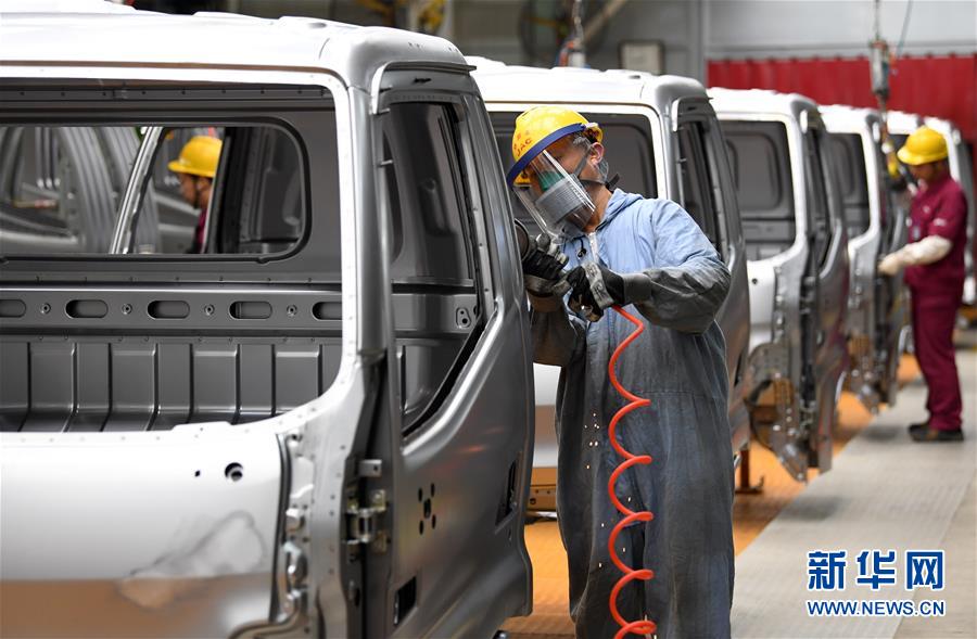 5月26日,工人在江淮汽車(chē)新港基地輕卡生產(chǎn)區(qū)內(nèi)忙碌。當(dāng)日,在位于安徽省合肥市肥西縣經(jīng)濟(jì)開(kāi)發(fā)區(qū)的江淮汽車(chē)新港基地輕卡生產(chǎn)區(qū)內(nèi),工人在做好疫情防控的同時(shí)加緊生產(chǎn)。新華社記者劉軍喜攝