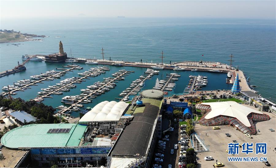中華人民共和國水準(zhǔn)零點(diǎn)景區(qū)所在的山東省青島市市南區(qū)東海中路30號銀海大世界(5月28日攝,無人機(jī)照片)。新華社記者李紫恒攝