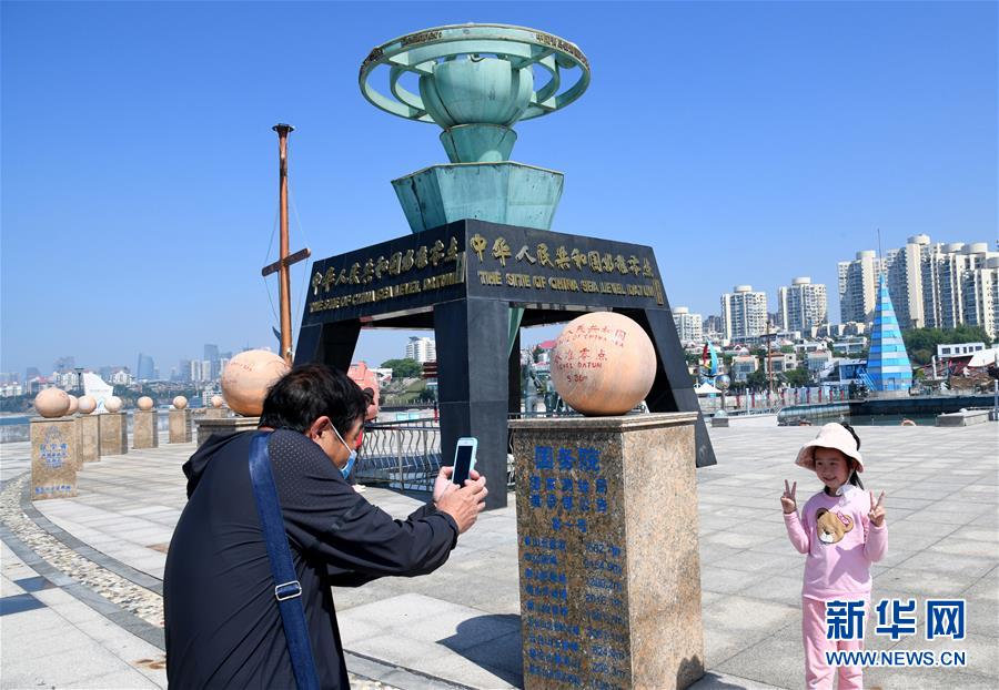 5月28日,游客在中華人民共和國(guó)水準(zhǔn)零點(diǎn)景區(qū)留影。新華社記者李紫恒攝