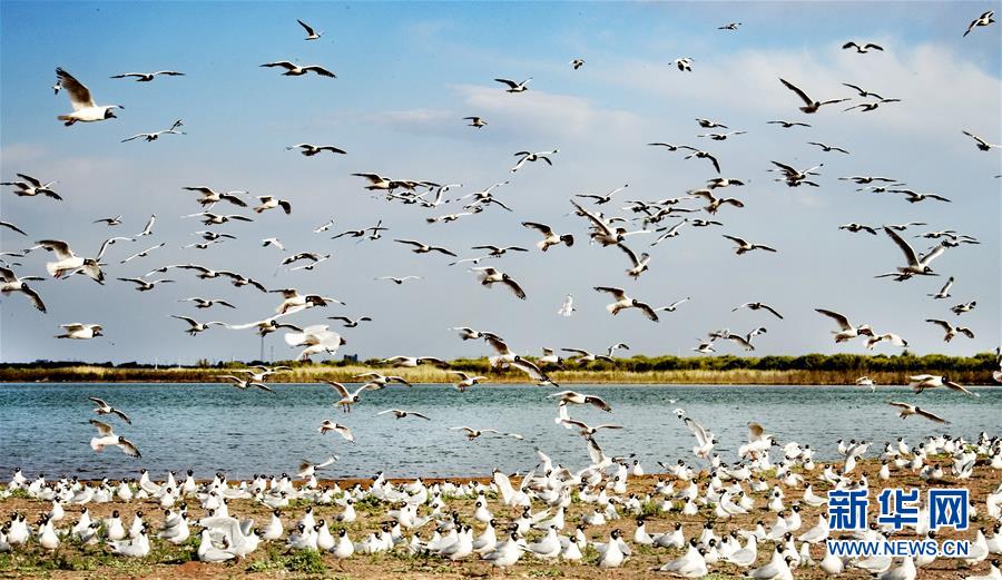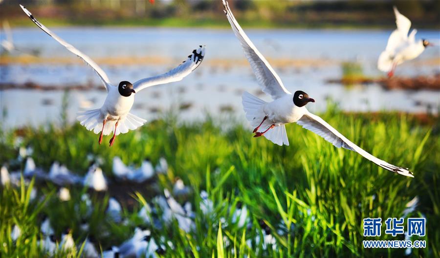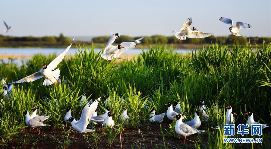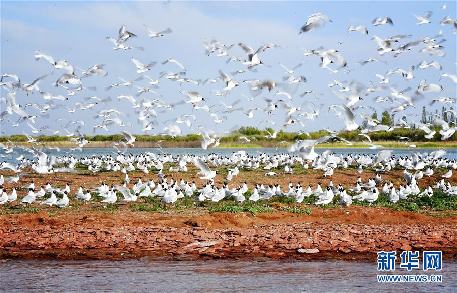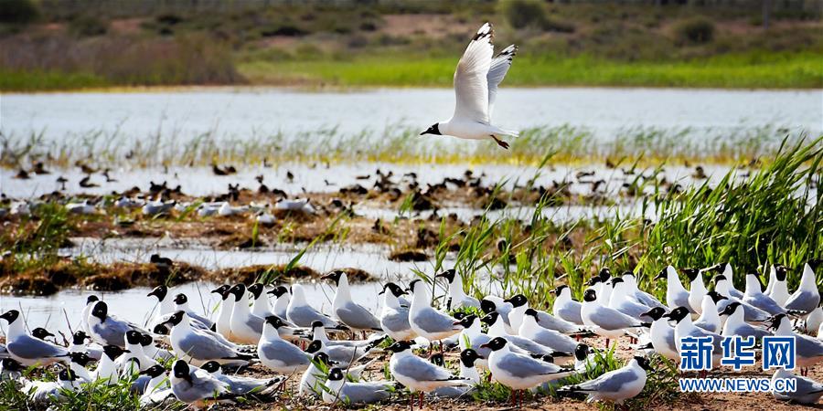 5月28日在陜西省神木市紅堿淖拍攝的遺鷗。陜西省神木市紅堿淖是中國最大的沙漠淡水湖,近年來隨著周邊生態(tài)環(huán)境改善,紅堿淖水位逐年提升,水域面積不斷擴大,每年四至八月,都會吸引大批遺鷗來此繁衍棲息,已成為遺鷗繁殖的重要基地。新華社記者劉瀟攝