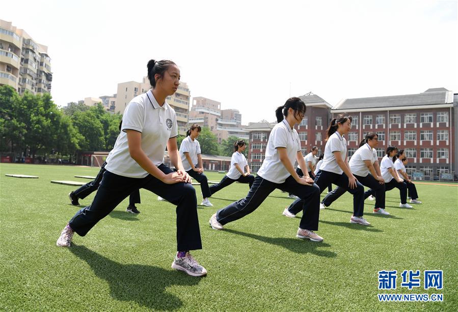 5月28日,北京市第十八中學(xué)初三年級(jí)的學(xué)生在體育課上做準(zhǔn)備活動(dòng)。北京市第十八中學(xué)共有初三年級(jí)學(xué)生340余名,學(xué)校在做好初三年級(jí)學(xué)生中考文化課備考的同時(shí),加強(qiáng)學(xué)生心理及身體素質(zhì)的鍛煉,以最好的精神狀態(tài)備戰(zhàn)中考。據(jù)悉,2020年北京中考報(bào)名人數(shù)為7.5萬人,比去年增加25%。新華社記者任超攝