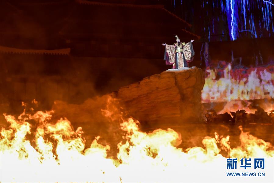 5月28日,演員在大型實景神話音樂劇《昆侖之約》中表演。5月28日,新疆文化旅游新名片——大型實景神話音樂劇《昆侖之約》在烏魯木齊南山景區(qū)上演。該劇融自然山水之美、藝術文化之光、現(xiàn)代科技之新于一體,為市民獻上一場視聽盛宴。新華社記者丁磊攝