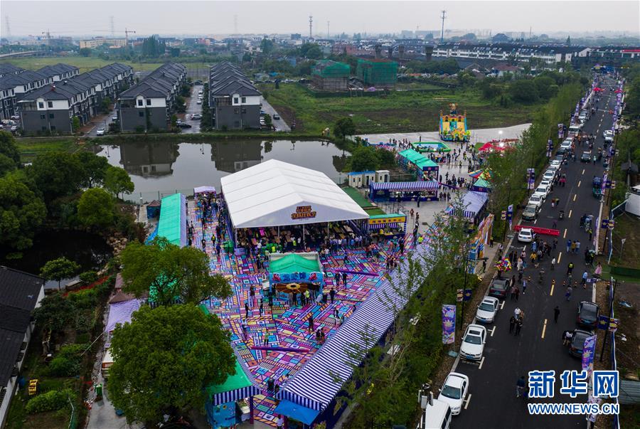 空中俯瞰龍蝦狂歡節(jié)美食現(xiàn)場(5月30日攝,無人機(jī)照片)。新華社記者徐昱攝