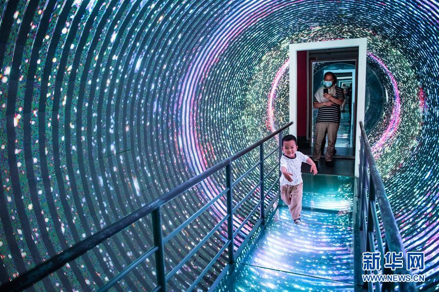 6月1日,小朋友在貴州科技館內(nèi)體驗(yàn)“時(shí)光隧道”。