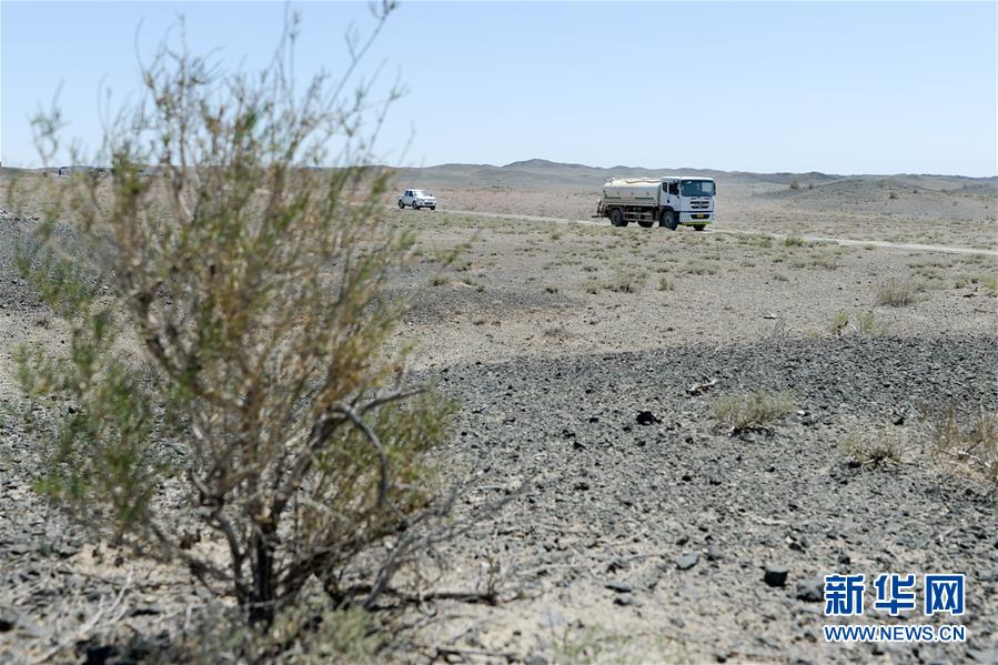 在新疆卡拉麥里山有蹄類野生動(dòng)物自然保護(hù)區(qū),管護(hù)員為野生動(dòng)物拉運(yùn)飲水(6月3日攝)。新華社記者丁磊攝。