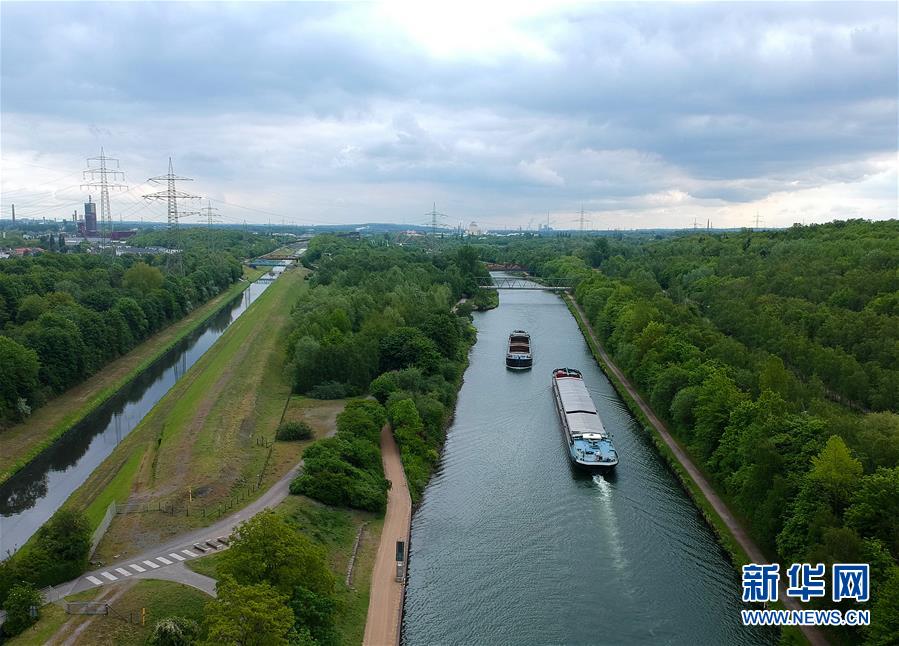 2019年5月10日,貨船航行在德國埃森埃姆舍河上。埃森位于德國傳統(tǒng)煤鐵工業(yè)區(qū)——魯爾區(qū)。魯爾區(qū)經(jīng)歷了產(chǎn)業(yè)轉(zhuǎn)型,已成為環(huán)境優(yōu)美、高科技聚集的創(chuàng)新經(jīng)濟(jì)區(qū)。6月5日是第47個(gè)聯(lián)合國世界環(huán)境日,今年的主題為“關(guān)愛自然刻不容緩”。新華社記者逯陽攝。