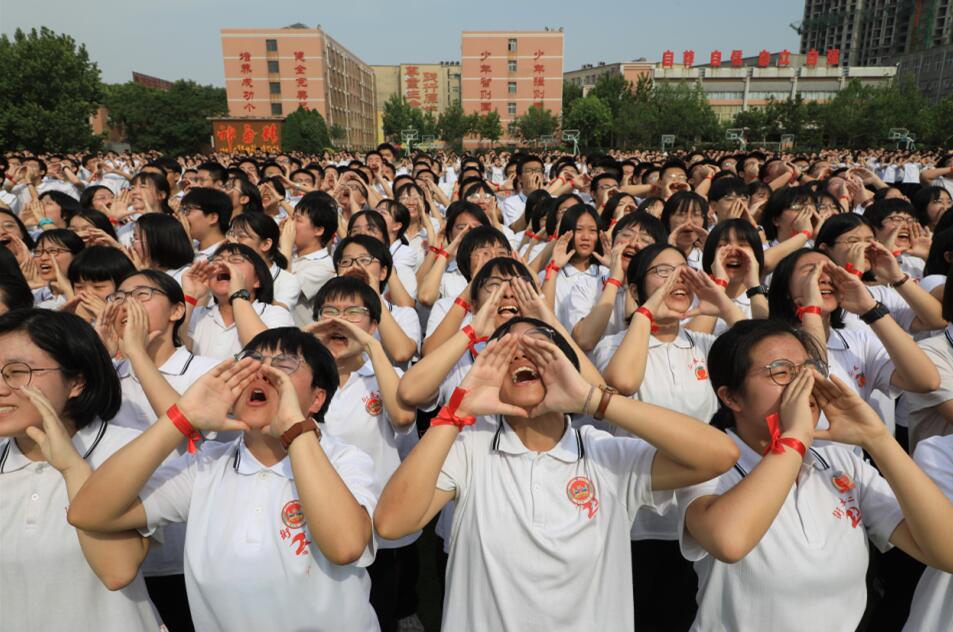 2020年6月6日,河北衡水二中舉行高考倒計時30天勵志動員會,通過向天空喊出夢想的方式幫學生釋放壓力,振奮精神迎高考。