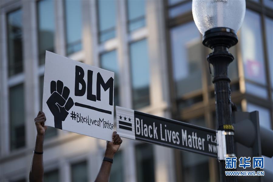 6月8日,一名男子在美國華盛頓白宮附近手舉“黑人的命也是命”的抗議標語。新華社記者劉杰攝