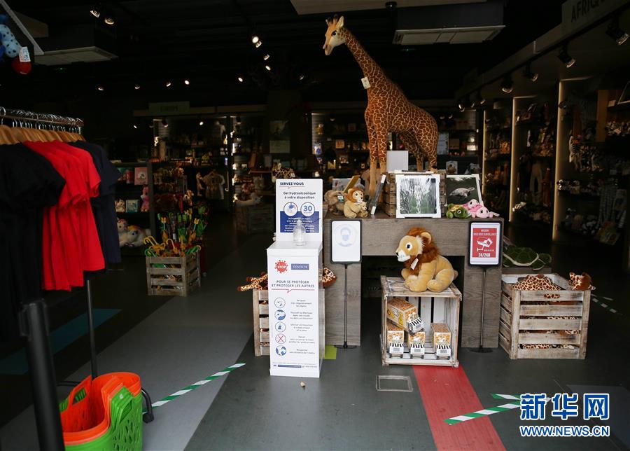 6月9日,法國巴黎動物園的紀(jì)念品商店入口處為游客提供消毒免洗洗手液,并在地上標(biāo)注了參觀方向。受新冠疫情影響關(guān)閉了近3個月的巴黎動物園于8日重新開放。新華社記者高靜攝