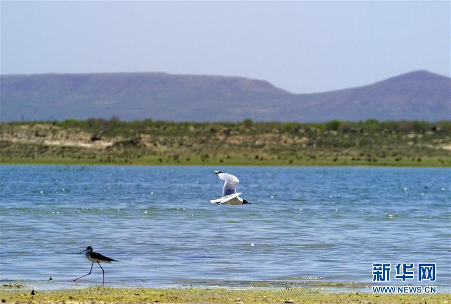 這是6月9日在泊江海子拍攝的黑翅長腳鷸(左)和遺鷗。近年來,在當?shù)卣亩喾N措施治理下,曾經(jīng)水面萎縮的內(nèi)蒙古自治區(qū)鄂爾多斯市境內(nèi)的泊江海子水量逐漸恢復(fù)。近期,包括遺鷗在內(nèi)的40多種鳥類來此棲息,泊江海子重新成為鳥類的樂園。新華社記者賈立君攝