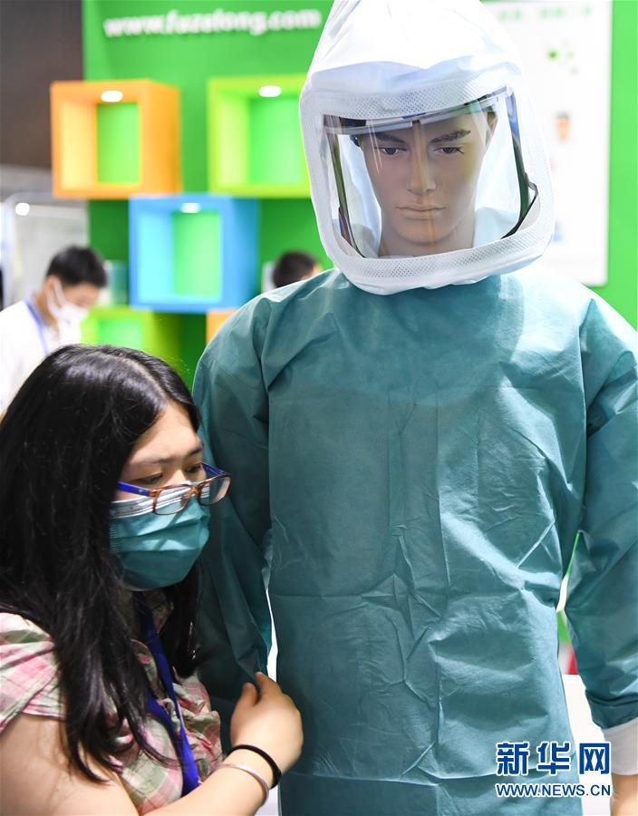 6月10日,參展工作人員在整理防護(hù)服產(chǎn)品。當(dāng)日,廣州國際防疫物資展覽會在保利世貿(mào)博覽館舉行。本次展會面積共計(jì)3.6萬平方米,設(shè)有防疫產(chǎn)品、設(shè)備、綜合服務(wù)、原輔料等4個展區(qū),參展企業(yè)約600家。新華社記者鄧華攝