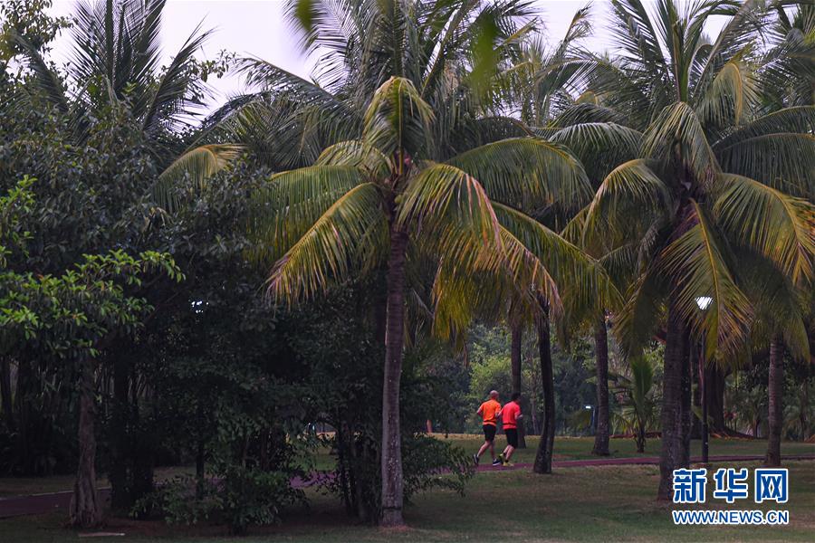 市民在??谌f綠園夜跑(5月28日拍攝)。近年來,夜跑成為越來越多都市人熱衷的健身方式之一。在海南??冢慨?dāng)夜幕降臨,“夜跑族”來到??谌f綠園、世紀(jì)公園等夜跑場所跑步,用一身酣暢淋漓的汗水?dāng)[脫白天工作中的壓力,享受跑步帶來的歡愉。新華社記者 蒲曉旭 攝