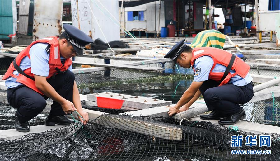 6月13日,海南省公安廳海岸警察總隊(duì)(籌備組)陵水支隊(duì)民警幫助轄區(qū)內(nèi)漁民固定漁排。當(dāng)日,海南省氣象局于16時(shí)30分繼續(xù)發(fā)布臺(tái)風(fēng)四級(jí)預(yù)警。今年第2號(hào)臺(tái)風(fēng)“鸚鵡”(熱帶風(fēng)暴級(jí))預(yù)計(jì)于14日在廣東沿海登陸。新華社記者楊冠宇攝。