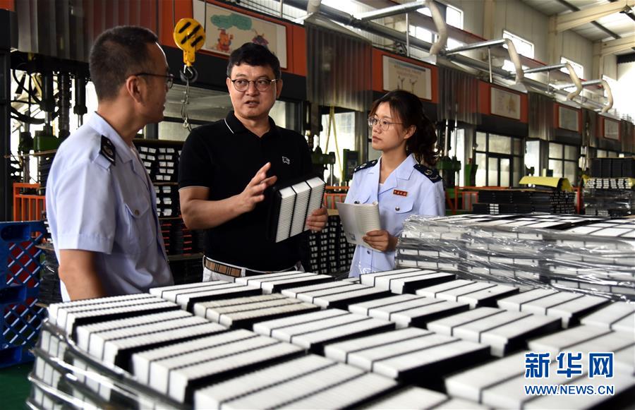 6月15日,稅務(wù)工作人員在河北省邢臺(tái)市威縣一家汽車配件生產(chǎn)企業(yè)調(diào)研稅費(fèi)政策落實(shí)情況。新冠肺炎疫情發(fā)生以來(lái),國(guó)家稅務(wù)總局威縣稅務(wù)局實(shí)施“一企一策”精準(zhǔn)輔導(dǎo),組建稅收服務(wù)小分隊(duì),主動(dòng)上門(mén)對(duì)接納稅企業(yè),解讀疫情期間稅費(fèi)優(yōu)惠相關(guān)政策,確保政策落實(shí)“一戶不少、應(yīng)享盡享”,為企業(yè)提供助力。新華社記者 朱旭東 攝