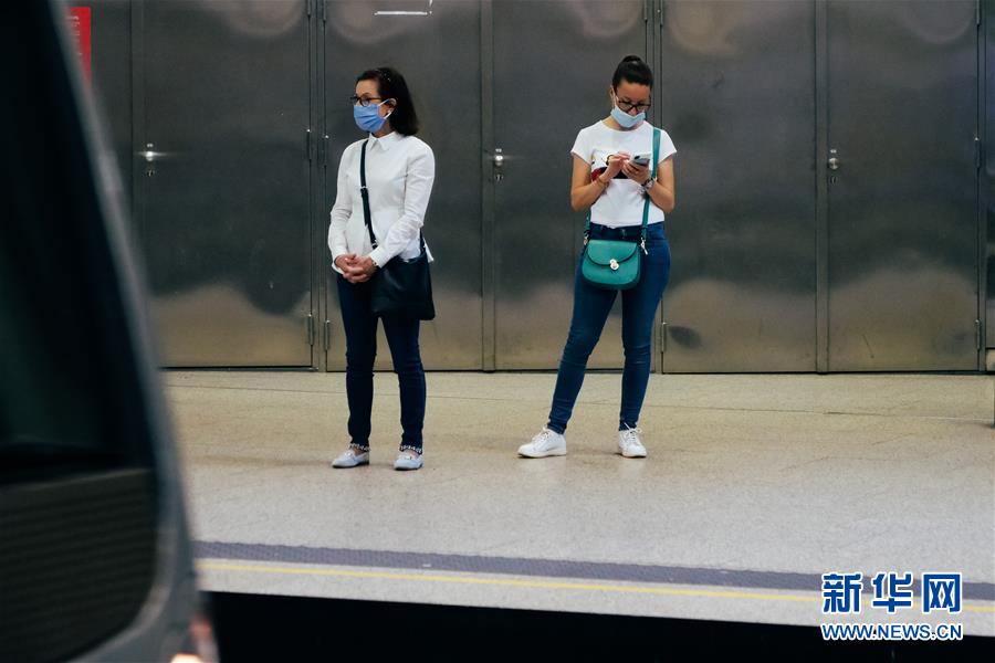 6月13日,戴口罩的乘客在比利時(shí)布魯塞爾一處地鐵站候車。新華社記者 張鋮 攝