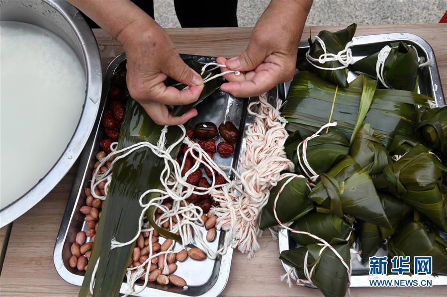 6月17日,水清溝街道居民在社區(qū)廣場上包粽子。當日,青島市北區(qū)水清溝街道開展迎端午鄰里愛心傳遞進網(wǎng)格活動,居民通過包粽子、吃粽子、網(wǎng)上端午傳統(tǒng)文化課等形式傳遞鄰里愛心,傳承民俗文化。新華社記者 李紫恒 攝