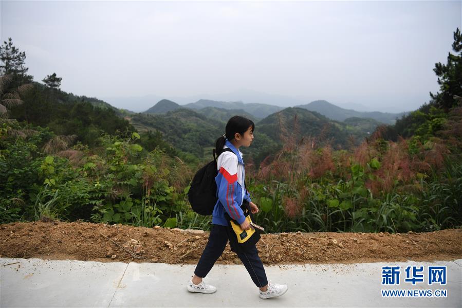 6月19日,蔡齊艷放學(xué)后步行回家過(guò)周末。新華社記者劉軍喜攝