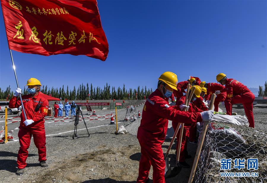 6月22日,應(yīng)急搶險隊員參加演練。當(dāng)日,新疆維吾爾自治區(qū)公路管理局組織的2020年國省干線公路突發(fā)地質(zhì)災(zāi)害應(yīng)急演練在烏魯木齊舉行,演練模擬烏魯木齊市柴窩堡區(qū)域遭受強(qiáng)降雨,誘發(fā)附近水域突發(fā)洪水,公路路基面臨被洪水沖毀的險情,組織搶險人員和機(jī)械設(shè)備在指定時間內(nèi)趕赴受災(zāi)現(xiàn)場實施應(yīng)急搶險處置。此次演練將進(jìn)一步增強(qiáng)各相關(guān)部門的防災(zāi)減災(zāi)意識,提高公路應(yīng)急搶險處突能力。新華社記者王菲攝