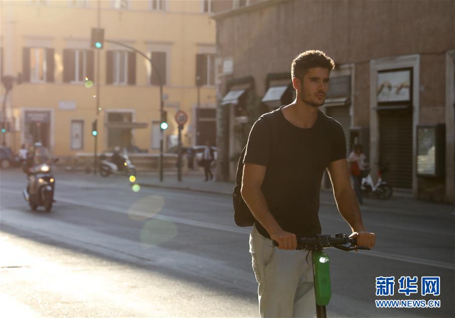 6月23日,在意大利首都羅馬,一名男子騎著電動(dòng)踏板車在城市中穿行。新華社記者程婷婷攝