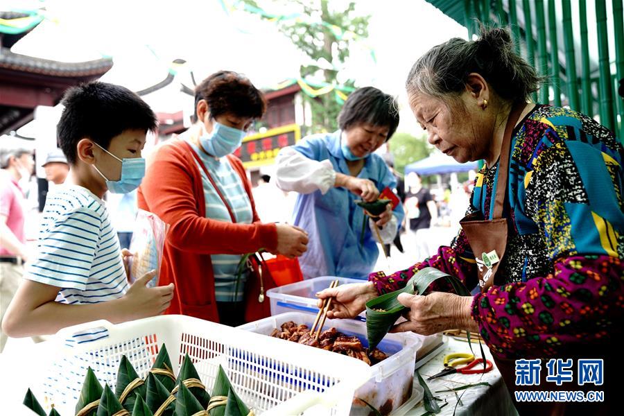 6月24日,上海一家企業(yè)員工和上海新虹橋街道社區(qū)居民一起包粽子迎端午。端午節(jié)臨近,各地舉行包粽子、做香包、賽龍舟等豐富多彩的民俗文化活動,迎接傳統(tǒng)佳節(jié)的到來。新華社記者陳飛攝