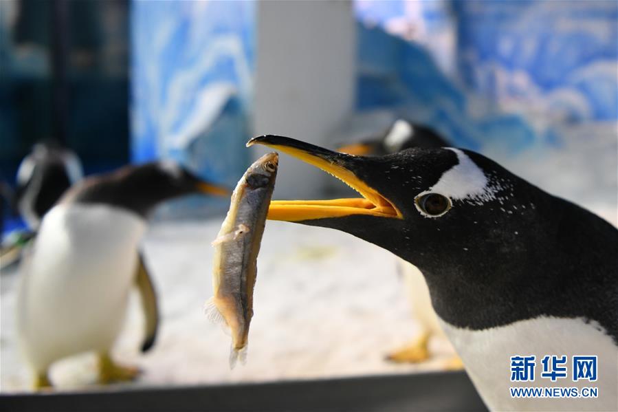 6月24日,哈爾濱極地館的企鵝在品嘗“魚粽”里的小魚。當(dāng)日,哈爾濱極地館的工作人員特地準(zhǔn)備了“魚粽”“肉粽”,讓生活在這里的極地動(dòng)物也品嘗一下端午美食。新華社記者王建威攝