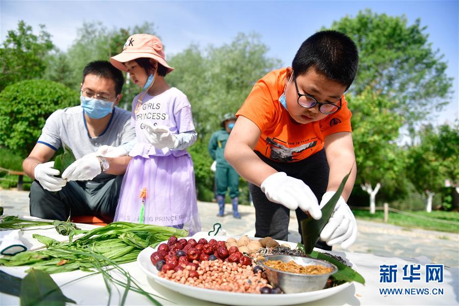 6月25日,在青海省西寧野生動物園,一位小朋友在給粽子裝餡料。當日是端午節(jié),青海省西寧野生動物園組織小朋友們?yōu)閯游飯@內的靈長類動物包粽子,讓動物們也享用端午節(jié)傳統(tǒng)“美味”。新華社記者 張龍 攝