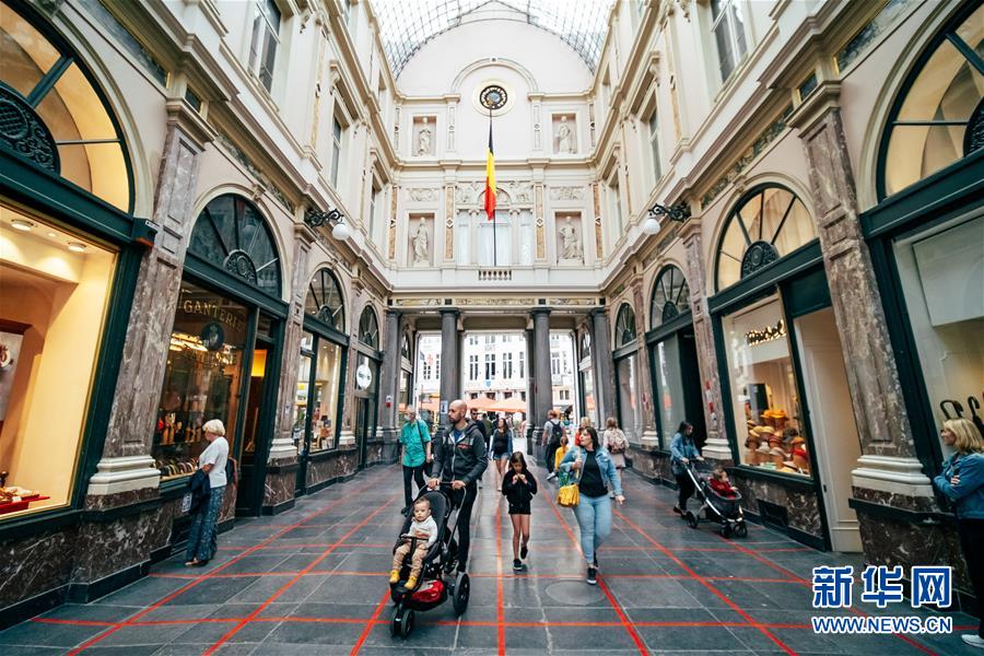 6月28日,游客在比利時(shí)布魯塞爾圣于貝爾長(zhǎng)廊游覽。近日,隨著歐盟國(guó)家間逐步開放邊境,比利時(shí)布魯塞爾游客逐漸增多。新華社記者張鋮攝