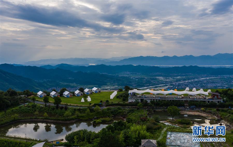 空中俯瞰杭州市富陽區(qū)常安鎮(zhèn)永安山頂?shù)膸づ窬频辏?月27日攝,無人機照片)。近期,浙江省杭州市富陽區(qū)場口鎮(zhèn)、常安鎮(zhèn)和湖源鄉(xiāng)組團開啟了一場夏季“綠水青山嘉年華”。這幾個壺源溪流域鄉(xiāng)鎮(zhèn)整合生態(tài)旅游資源,組團開發(fā)山村旅游項目,游客可以參與壺源溪水上游樂、露營永安山頂、特色農產品集市和瓜果節(jié)等特色活動。新華社記者徐昱攝