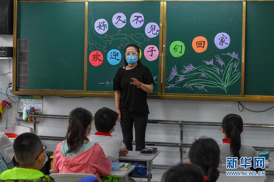 6月29日,在吉林市第一實驗小學(xué),教師關(guān)海英為學(xué)生上開學(xué)第一課。新華社記者張楠攝