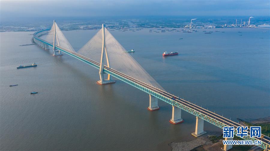 滬蘇通長(zhǎng)江公鐵大橋(6月29日攝,無(wú)人機(jī)照片)。即將于7月1日通車(chē)的滬蘇通長(zhǎng)江公鐵大橋北起江蘇南通,南至江蘇張家港,公鐵合建跨江正橋全長(zhǎng)5827米,為集合高速公路、客貨混線(xiàn)鐵路、高速鐵路的“三合一”過(guò)江通道,建成通車(chē)后將有效促進(jìn)長(zhǎng)三角城市群跨江融合、協(xié)同發(fā)展。新華社記者李博攝