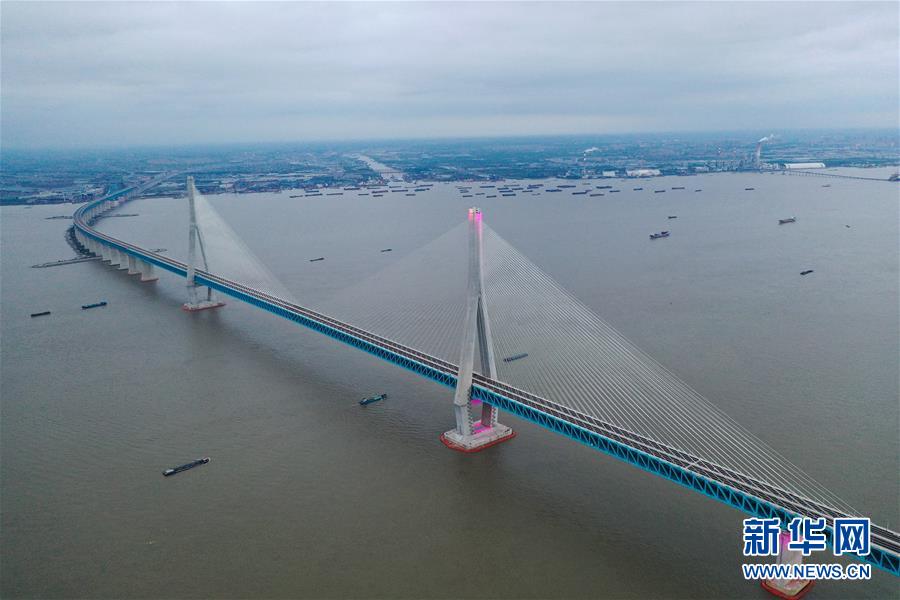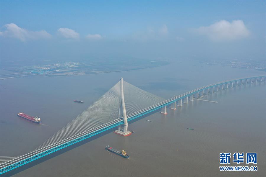 滬蘇通長(zhǎng)江公鐵大橋(6月30日攝,無(wú)人機(jī)照片)。即將于7月1日通車的滬蘇通長(zhǎng)江公鐵大橋北起江蘇南通,南至江蘇張家港,公鐵合建跨江正橋全長(zhǎng)5827米,為集合高速公路、客貨混線鐵路、高速鐵路的“三合一”過江通道,建成通車后將有效促進(jìn)長(zhǎng)三角城市群跨江融合、協(xié)同發(fā)展。新華社記者季春鵬攝