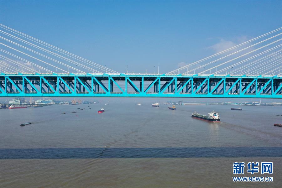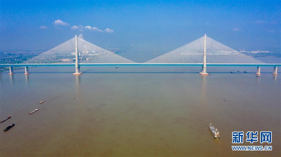 滬蘇通長(zhǎng)江公鐵大橋(6月29日攝,無(wú)人機(jī)照片)。即將于7月1日通車的滬蘇通長(zhǎng)江公鐵大橋北起江蘇南通,南至江蘇張家港,公鐵合建跨江正橋全長(zhǎng)5827米,為集合高速公路、客貨混線鐵路、高速鐵路的“三合一”過江通道,建成通車后將有效促進(jìn)長(zhǎng)三角城市群跨江融合、協(xié)同發(fā)展。新華社記者李博攝