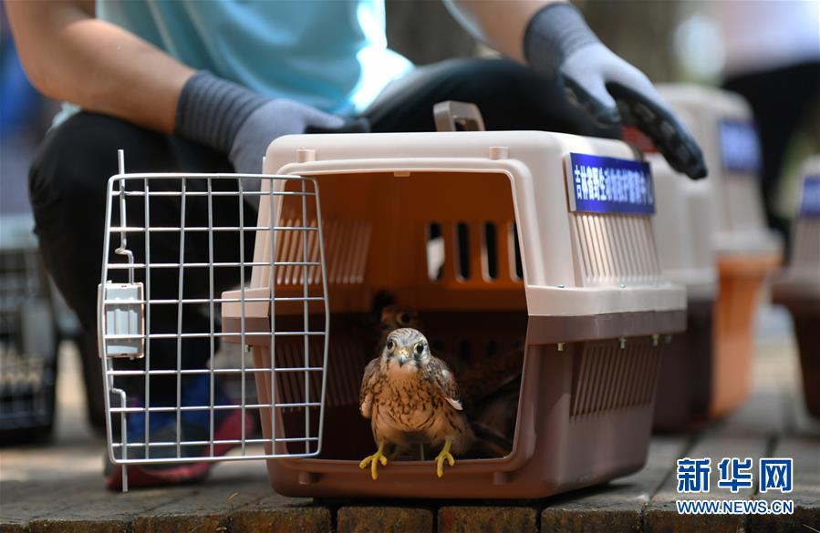 這是7月1日在放飛活動上拍攝的一只紅隼。新華社記者林宏攝