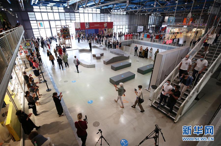 7月1日,法國巴黎蓬皮杜藝術(shù)中心的工作人員鼓掌歡迎參觀者。因新冠疫情關(guān)閉的法國巴黎蓬皮杜藝術(shù)中心于7月1日重新開門迎客。目前,中心只開放6層的臨時展區(qū)和4、5層的現(xiàn)代藝術(shù)常設(shè)展區(qū)。參觀者需提前網(wǎng)上預(yù)約參觀時段,11歲以上參觀者須佩戴口罩,參觀過程中保持安全距離。新華社記者高靜攝