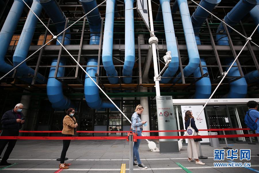7月1日,參觀者在法國巴黎蓬皮杜藝術(shù)中心外排隊(duì)等待。因新冠疫情關(guān)閉的法國巴黎蓬皮杜藝術(shù)中心于7月1日重新開門迎客。目前,中心只開放6層的臨時展區(qū)和4、5層的現(xiàn)代藝術(shù)常設(shè)展區(qū)。參觀者需提前網(wǎng)上預(yù)約參觀時段,11歲以上參觀者須佩戴口罩,參觀過程中保持安全距離。新華社記者高靜攝