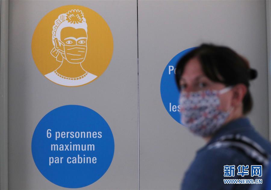 7月1日,法國巴黎蓬皮杜藝術(shù)中心的電梯上貼著“請佩戴口罩”和“最多6人乘梯”的標(biāo)識。因新冠疫情關(guān)閉的法國巴黎蓬皮杜藝術(shù)中心于7月1日重新開門迎客。目前,中心只開放6層的臨時展區(qū)和4、5層的現(xiàn)代藝術(shù)常設(shè)展區(qū)。參觀者需提前網(wǎng)上預(yù)約參觀時段,11歲以上參觀者須佩戴口罩,參觀過程中保持安全距離。新華社記者高靜攝