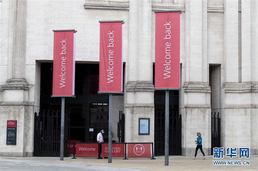 7月4日,參觀者佩戴口罩在英國國家美術(shù)館的媒體開放日上參觀。新華社記者韓巖攝
