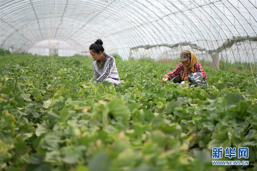 7月5日,在黑龍江省肇東市昌五鎮(zhèn)昌盛村農(nóng)業(yè)生態(tài)觀光園扶貧大棚,村民在采摘香瓜。黑龍江省肇東市昌五鎮(zhèn)昌盛村農(nóng)業(yè)生態(tài)觀光園占地千余畝,融合了種植采摘、民俗產(chǎn)品展銷、旅游觀光等項(xiàng)目,方便周邊農(nóng)民就近就業(yè),助力脫貧增收。新華社記者王建威攝