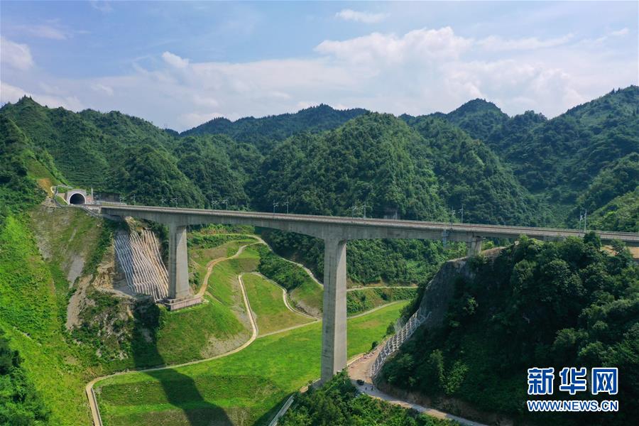 7月6日拍攝的安六鐵路彭家沖一號大橋(無人機照片)。當(dāng)日,新建貴州安六鐵路(安順至六盤水)聯(lián)調(diào)聯(lián)試工作進入收尾階段,開通前的各項準(zhǔn)備工作已基本就緒。安六鐵路線路全長約125公里,設(shè)計時速250公里,為國家I級雙線客運專線。建成投用后,貴陽至六盤水的鐵路旅行時間可從現(xiàn)在的3.5小時縮短為1小時左右,貴州省六盤水市將全面接入全國高鐵網(wǎng)。新華社記者劉續(xù)攝