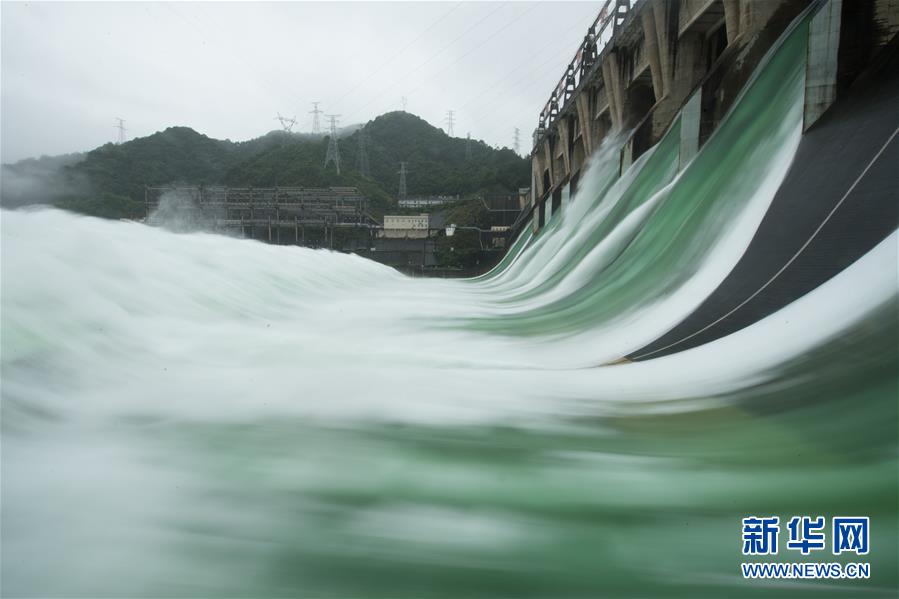 7月7日下午開啟7孔泄洪的新安江水庫。受持續(xù)降水影響,浙江新安江水庫水位持續(xù)快速上升。繼當日10時開啟3孔、12時開啟5孔泄洪后,新安江水庫于16時增加到7孔泄洪。新安江水庫是華東地區(qū)最大的水庫,在錢塘江流域的防洪度汛中起到關(guān)鍵作用。新華社記者翁忻旸攝