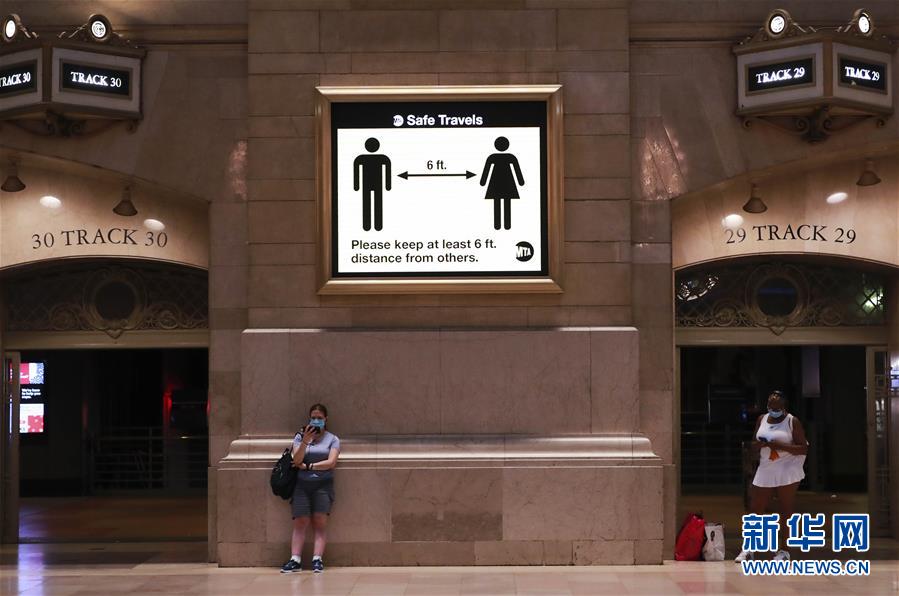7月8日,人們在美國紐約中央車站內(nèi)等候乘車。美國約翰斯·霍普金斯大學8日發(fā)布的新冠疫情最新統(tǒng)計數(shù)據(jù)顯示,美國累計確診病例超過300萬例。數(shù)據(jù)顯示,截至美國東部時間8日11時34分(北京時間23時34分),美國累計確診病例3016515例,累計死亡病例131594例。新華社記者王迎攝