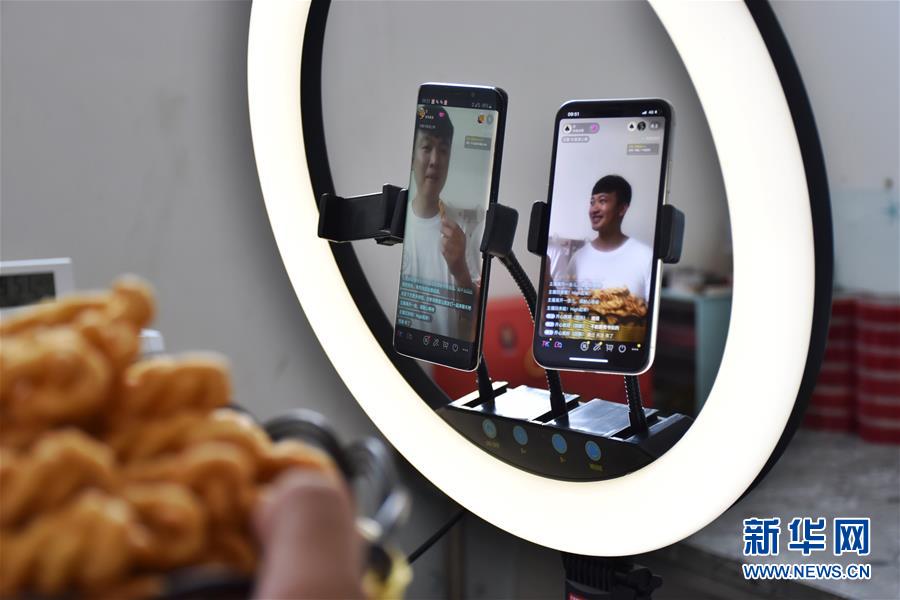 7月8日,張亞博、張亞釗兄弟在直播帶貨。新華社記者韓朝陽攝