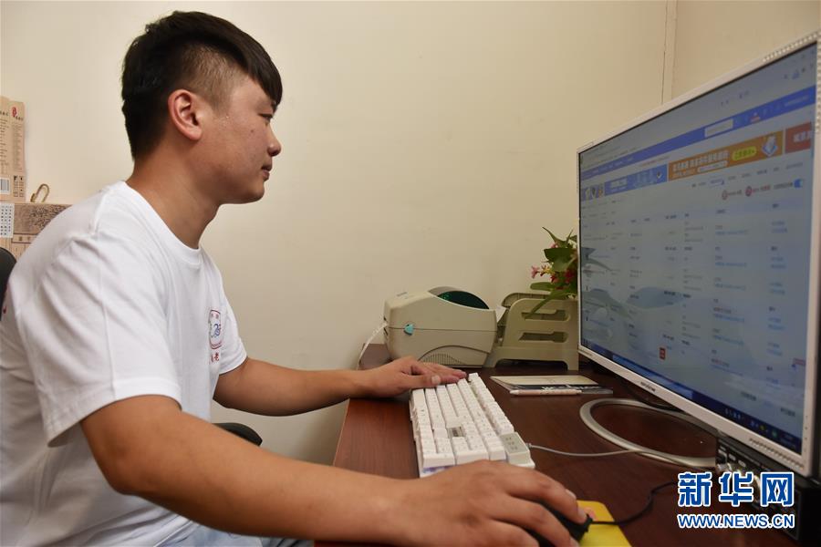 7月8日,張亞釗在處理網(wǎng)絡(luò)訂單。新華社記者韓朝陽攝