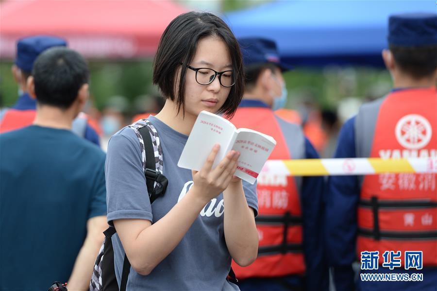 7月9日,一名考生在歙縣第二中學(xué)考點(diǎn)外復(fù)習(xí)。受強(qiáng)降雨影響,2020年高考安徽歙縣考區(qū)7月7日未能如期開考,經(jīng)研究并報(bào)教育部批準(zhǔn),歙縣考區(qū)于9日啟用2020年普通高等學(xué)校招生全國統(tǒng)一考試語文、數(shù)學(xué)(文、理)科目副題進(jìn)行考試。新華社記者黃博涵攝