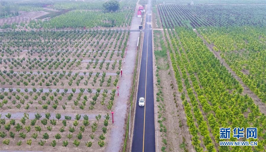 7月9日,車輛在文安縣孫氏鎮(zhèn)紀屯村公路上行駛。該條公路建成于2019年,投資400萬元,有效推動當?shù)胤N植業(yè)和旅游業(yè)的發(fā)展(無人機照片)。近年來,河北省文安縣推進實施縣鄉(xiāng)公路改造、窄路基路面拓寬、村社道路硬化、危橋改造、安全生命防護等工程,不斷完善農村物流網絡,推動城鄉(xiāng)交通基礎設施互聯(lián)互通。新華社記者李曉果攝