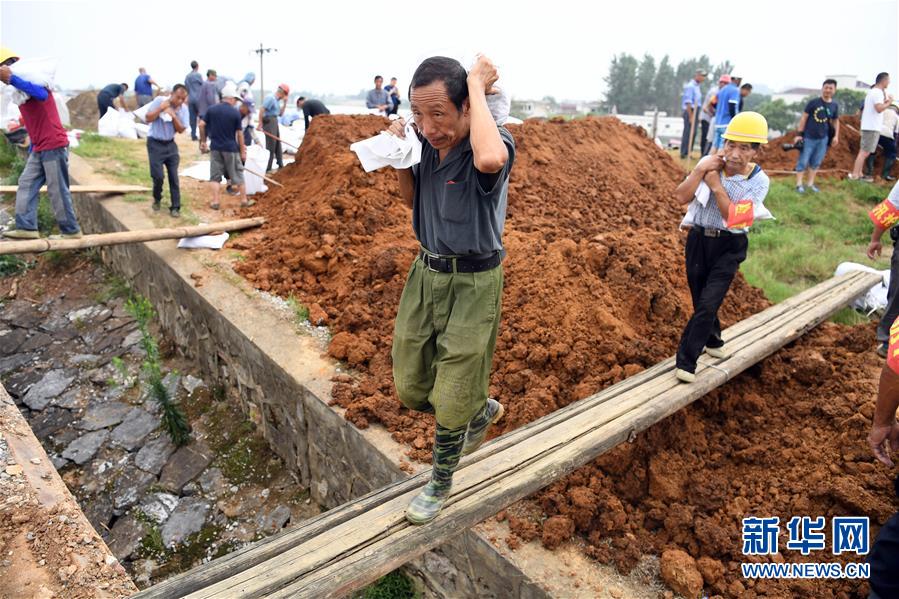 7月14日,當(dāng)?shù)卮迕裢簧习徇\(yùn)砂石袋。近日,受洪水影響,安徽省望江縣華陽鎮(zhèn)境內(nèi)的江調(diào)圩內(nèi)部道路漫水,搶險(xiǎn)車輛無法進(jìn)入。當(dāng)?shù)胤姥床块T組織船只裝載砂石袋等防汛物資,運(yùn)往圩堤保防汛。新華社記者 劉軍喜 攝
