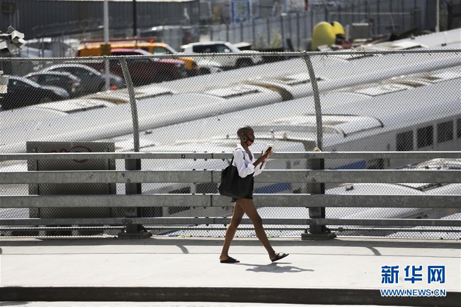 7月14日,戴口罩的女子走在美國紐約街頭。美國約翰斯·霍普金斯大學:截至北京時間15日6時34分,全球新冠確診病例達13258016例,死亡病例為576752例。美國是全球疫情最嚴重的國家,確診病例達3416222例,死亡病例為136319例。新華社記者 王迎 攝