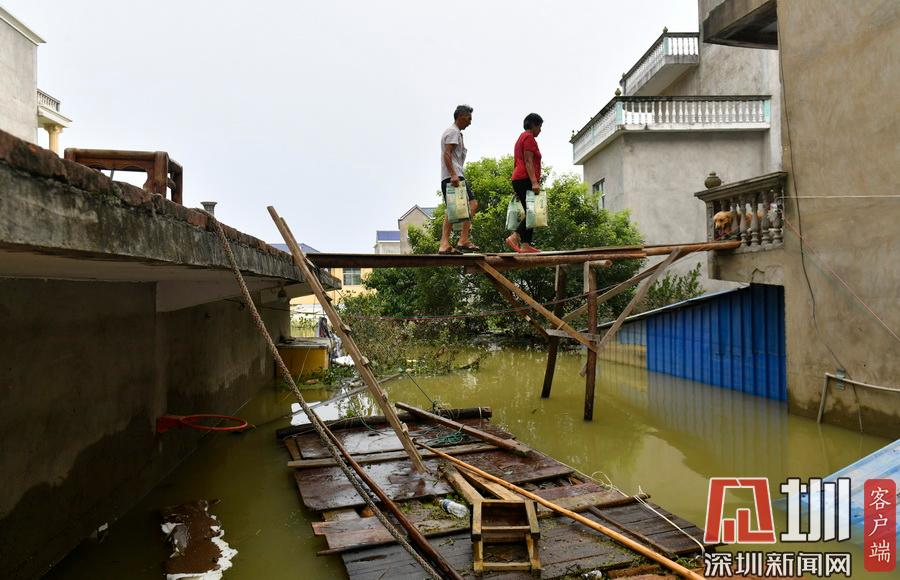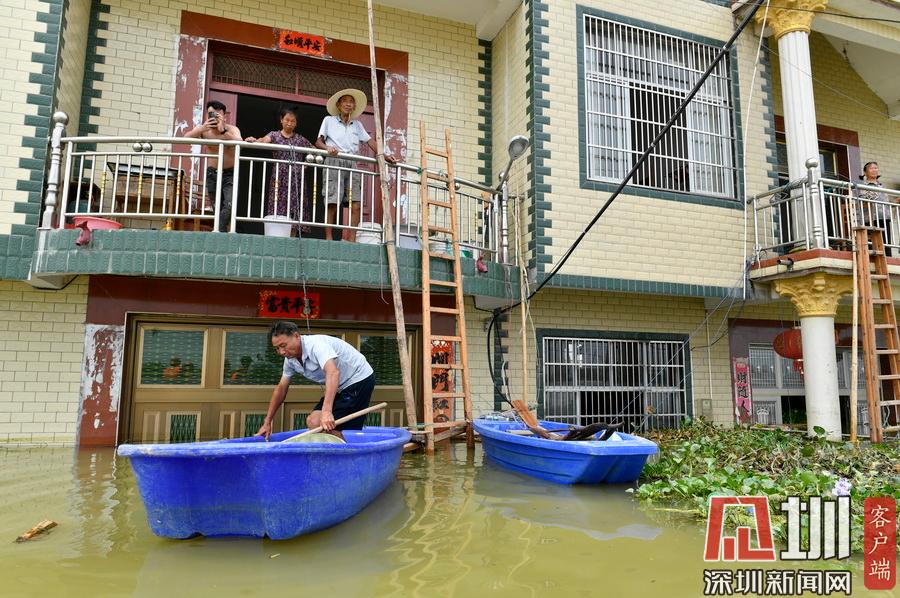 2020年7月15日,江西省鄱陽縣油墩街鎮(zhèn)同興村,村莊受到洪水圍困,大部分村民已經(jīng)被轉(zhuǎn)移出去,仍有少數(shù)村民選擇留守家中積極自救繼續(xù)生活。7月8日晚,鄱陽縣油墩街鎮(zhèn)西江因特大暴雨出現(xiàn)漫堤決口,5個行政村被洪水圍困,數(shù)萬名群眾被及時(shí)疏散轉(zhuǎn)移。同興村村民張瑤康回憶起了當(dāng)時(shí)的場景,“水一下子就涌進(jìn)來,等緩過神來趕緊向二樓轉(zhuǎn)移一樓的物品。洪水來時(shí)只從一樓搶到了一些輕便易拿的東西,冰箱、洗衣機(jī)之類的大物件,至今仍浸泡在一樓水中?!?5日,記者跟隨張瑤康乘船回家,抵達(dá)后看到,一樓淹沒在水中,一個綁在二樓護(hù)欄的木梯成為進(jìn)出“家門”的唯一通道?!懊刻靹澊ゴ謇镞\(yùn)送水和食物,家里有煤氣罐和灶臺。因?yàn)?0多歲的老母親行動不便,我們選擇留守家中?!薄半m然對岸就有安置點(diǎn),但還是更愿待在自己家里,一來是不愿意給政府添麻煩,二來能每天看著自己的房子心里踏實(shí)?!蓖d村村民張長來夫婦帶著剛剛領(lǐng)到的大米、方便面、飲用水乘船回到家中。記者在現(xiàn)場看到,隨著各方救援力量和物資的匯聚,被洪水圍困的村民生活雖有不便,但生活仍在繼續(xù)?!胺孔硬坏梗揖驮?,我們要積極面對,早日重建家園。”張瑤康告訴記者。