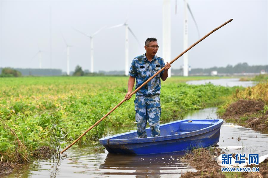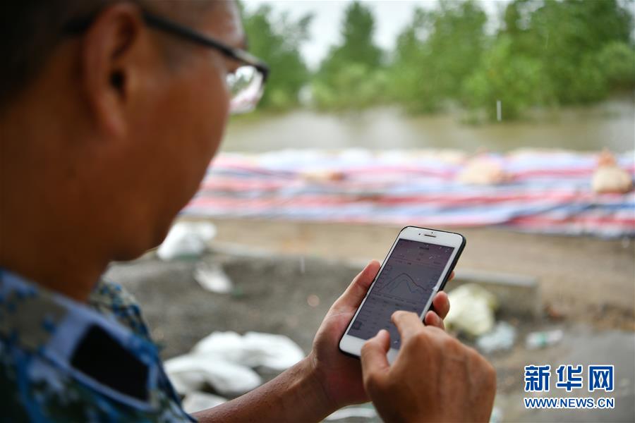 劉良武在手機(jī)上查詢(xún)水位情況(7月19日攝)。新華社記者李鑫攝