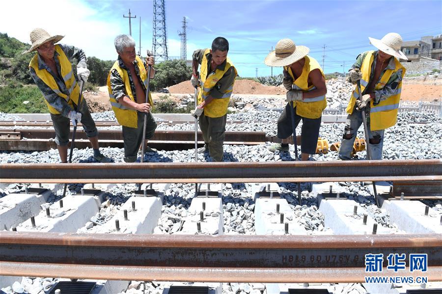 7月20日,中鐵二十四局施工人員進(jìn)行平潭海峽公鐵大橋最后一根500米長軌的換鋪工作。當(dāng)日,中鐵二十四局施工人員在平潭海峽公鐵大橋進(jìn)行最后一根鐵路長軌換鋪。至此,平潭海峽公鐵大橋雙線鐵路長軌全部換鋪完成。新華社記者林善傳攝
